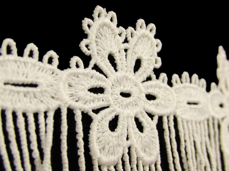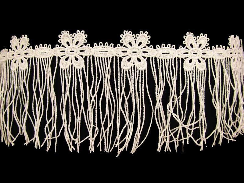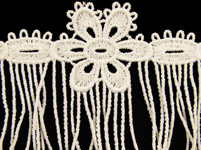 Piękna taśma gipiurowa w formie koronki z frędzlem w kolorze.
