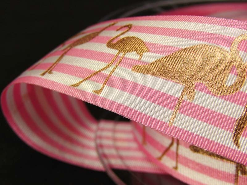 • Wstążka o szerokości 2,5m z nadrukiem flamingów w kolorze różowym.