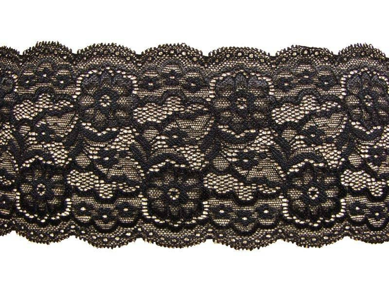 Koronka elastyczna o pięknym roślinnym wzorze w kolorze.