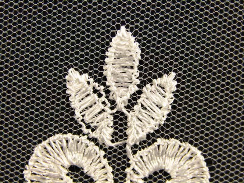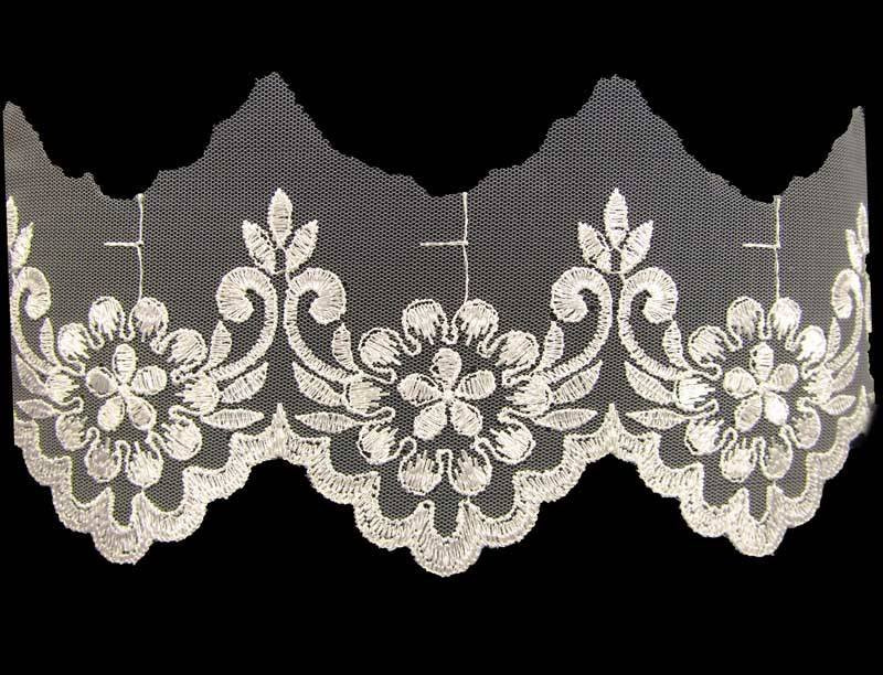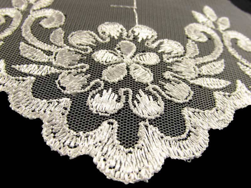 Piękna, delikatna koroneczka z wykończonym jednym brzegiem. Haft wykonany nitką z połyskiem.