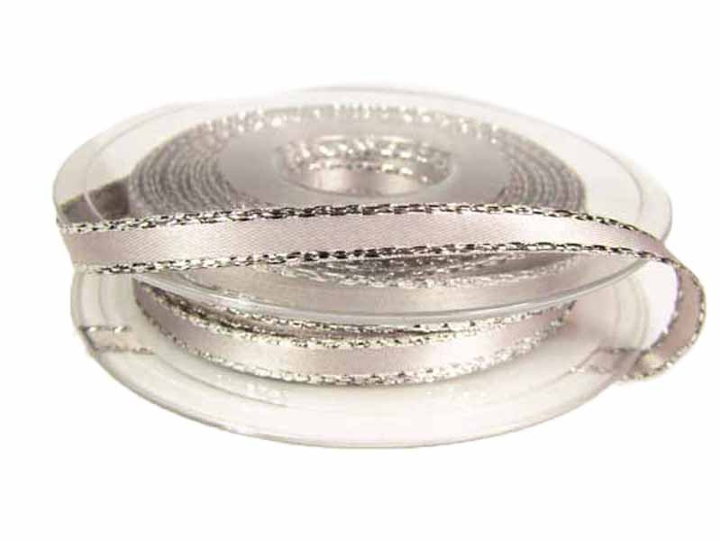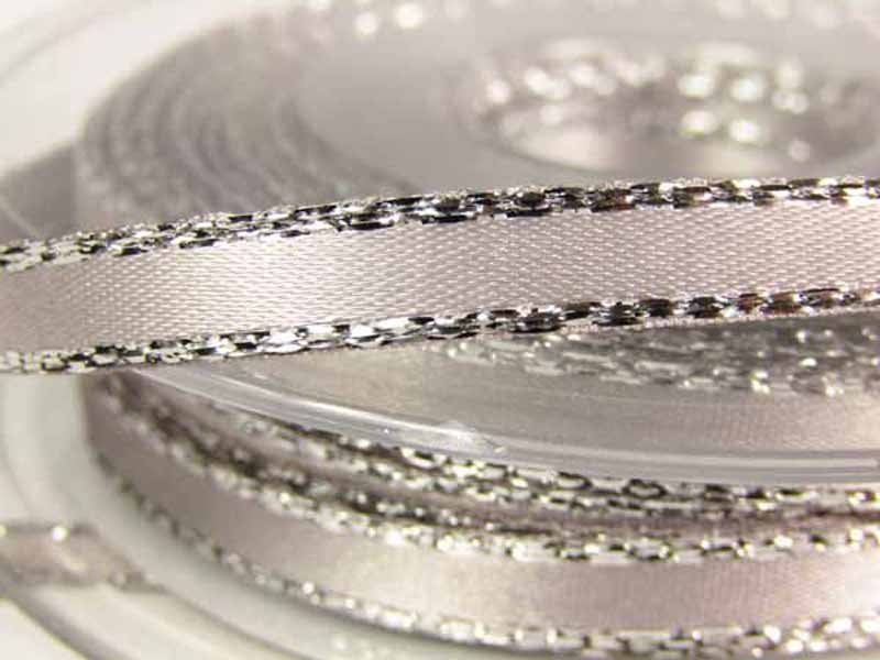 Wstążka atłasowa w kolorze o szerokości 0,7cm ze srebrnym brzegiem.