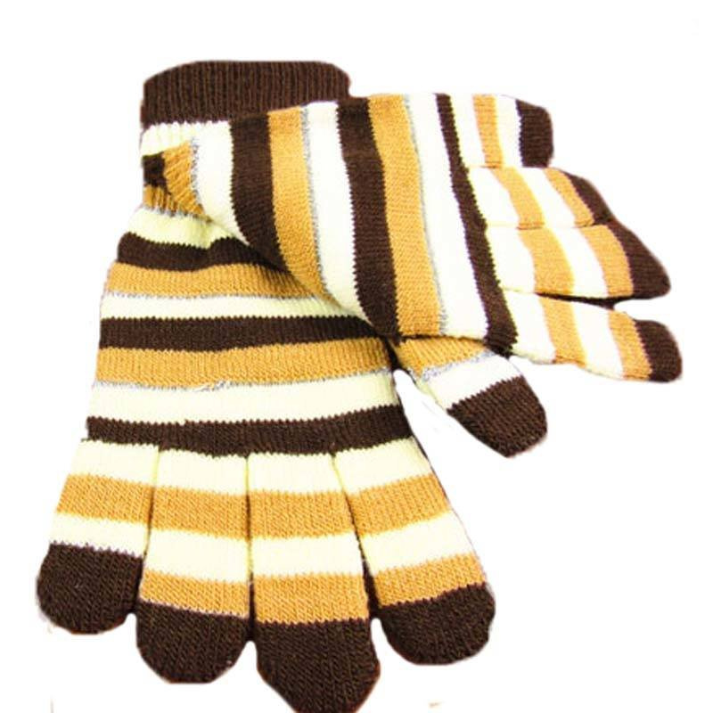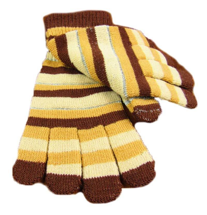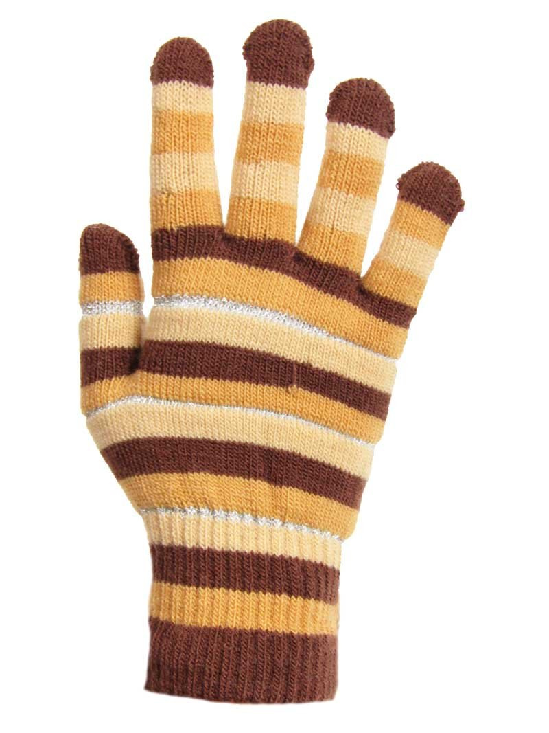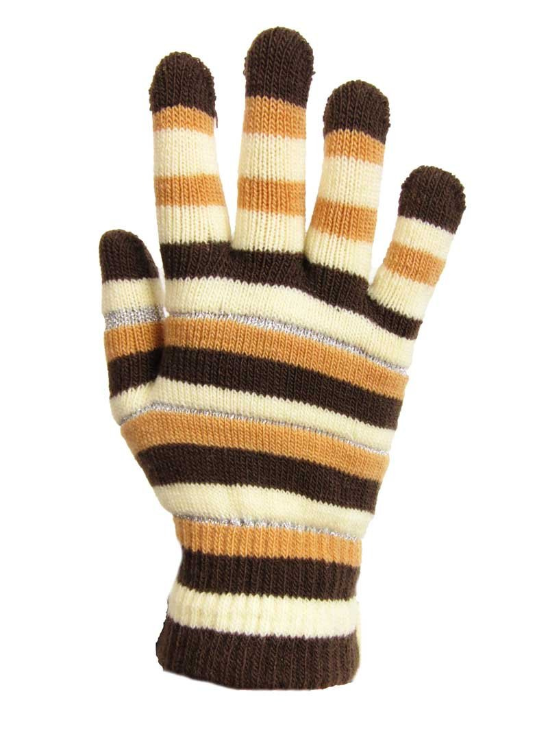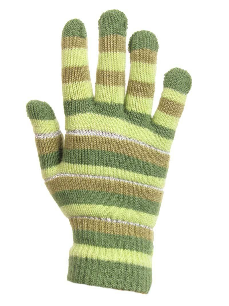 - Kolorowa w paski dziana rękawiczka młodzieżowa z dodatkiem srebrnych pasków.