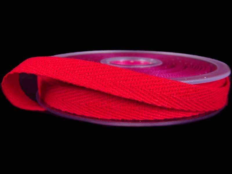 Taśma bawełniana o szerokości 1cm tkana w formie jodełki w kolorze. Taśma jest miękka i delikatna co do struktury. Używana przy produkcji w wielu różnych branżach.
