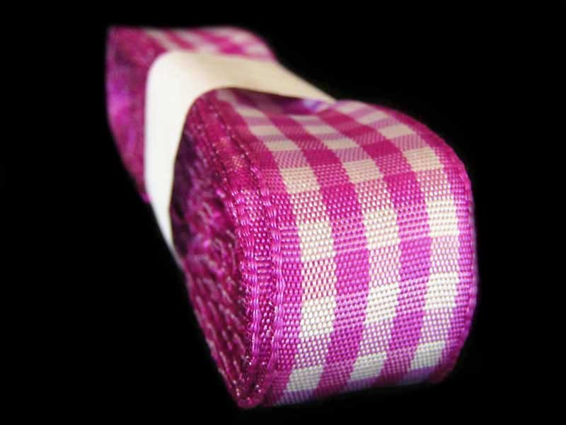 - Wstążka tkana o szerokości 25mm o wzorze kratki z grubszym brzegiem wykończonym tym samym kolorem.