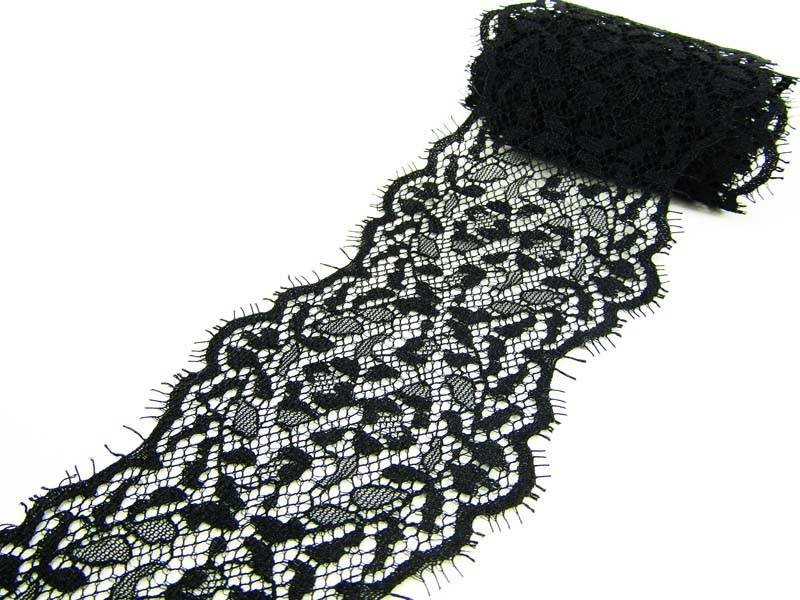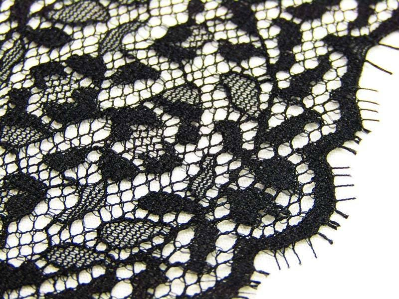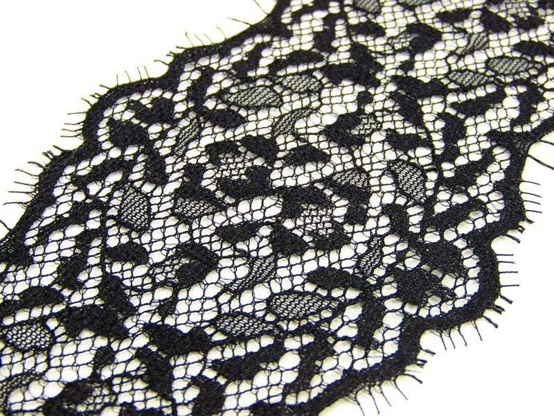 Koronka stabilna w formie wstawki o szerokości 7cm w kolorze czarnym z obustronnie wykończonym brzegiem z formie delikatnych nitek .