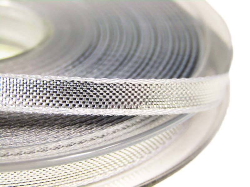 Wstążka lurexowa o szerokości 0,5cm w kolorze srebrnym.