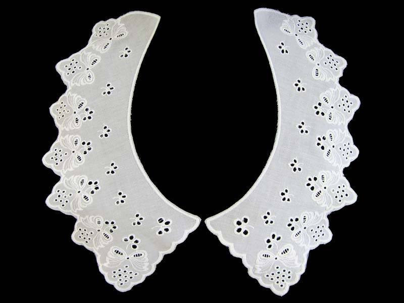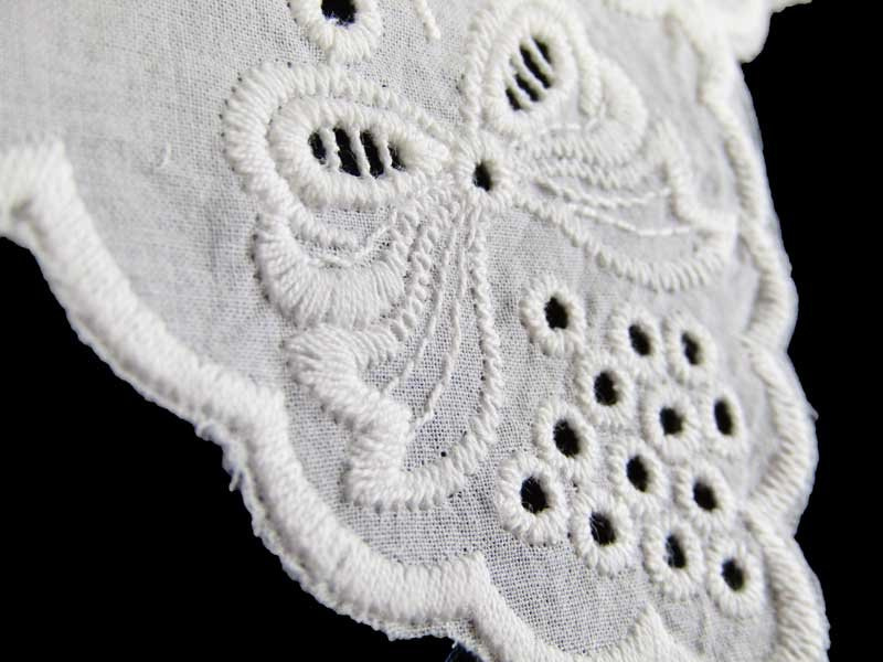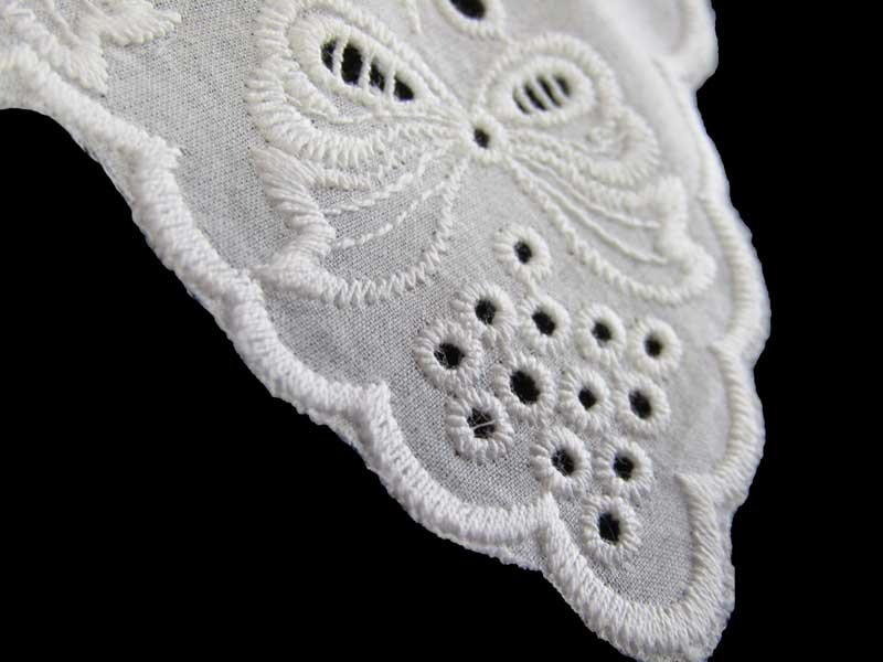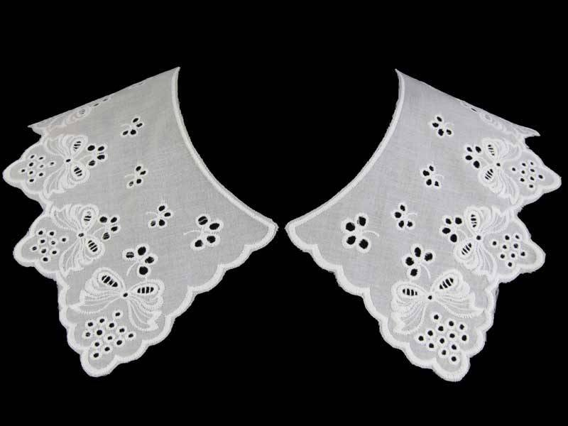 Duży bawełniany kołnierzyk o matowym wykończeniu i pięknym ażurowym hafcie.