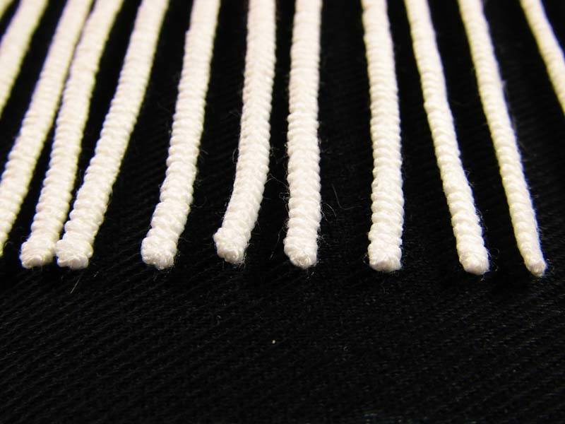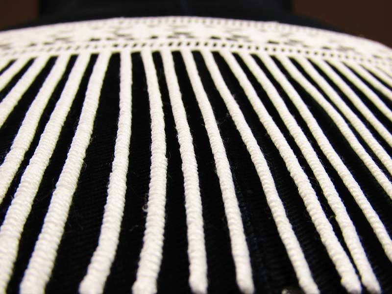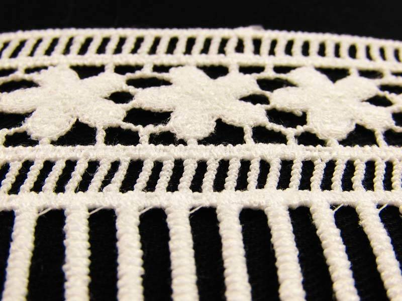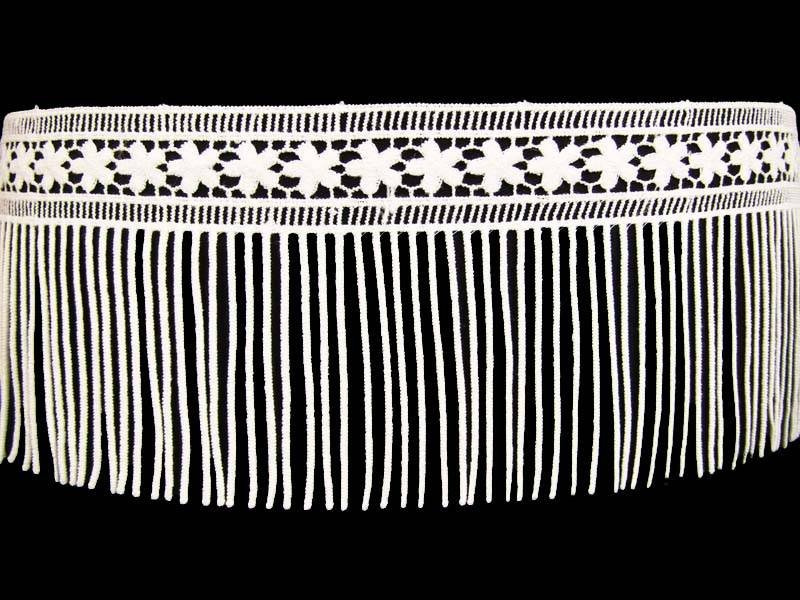 Taśma gipiurowa w formie frędzla wykończonego górą koronką w kolorze.
