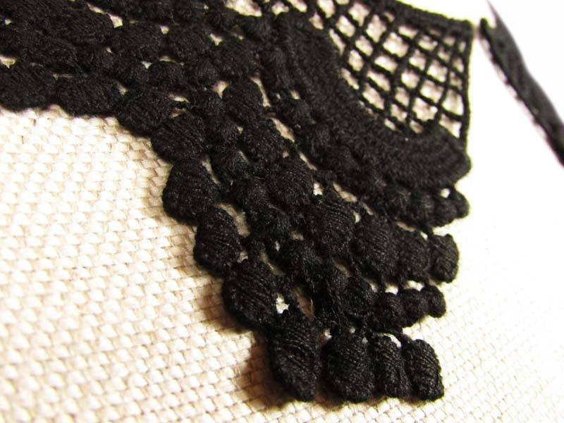 Dwuczęściowy, bawełniany, gipiurowy kołnierzyk o matowym wykończeniu w kolorze.