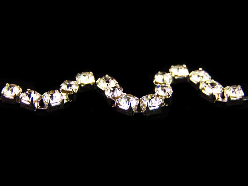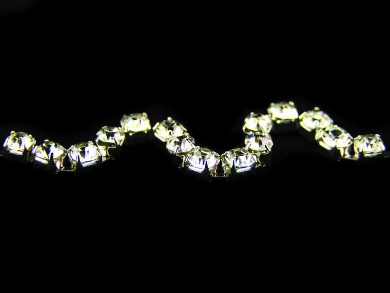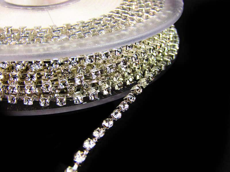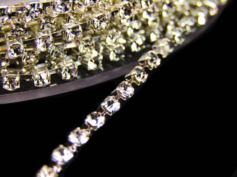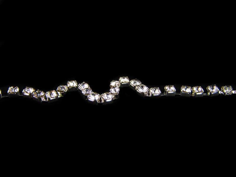 Taśma o szerokości 2mm w formie srebrnego łańcuszka z gęsto osadzonymi cyrkoniami w metalowej oprawie.