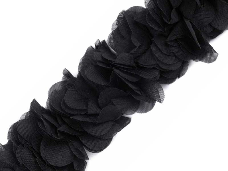 Taśma 6cm ozdobna KWIAT 3D czarna