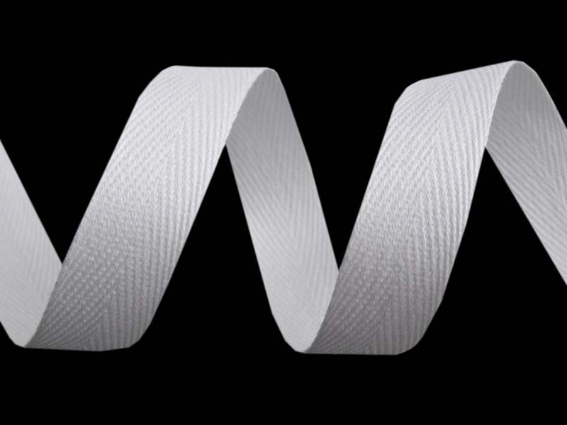 - Taśma bawełniana o szerokości 1,5cm tkana o wzorze jodełki.