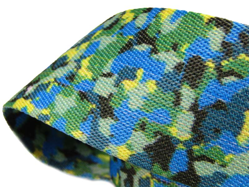 Taśma poliestrowa o szerokości 4cm z jednakowym, obustronnym nadrukiem. Taśma jest gęsta, mięsista o grubości 1,8mm. Nadaje się na pasy nośne i trzymające.