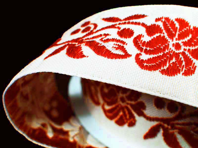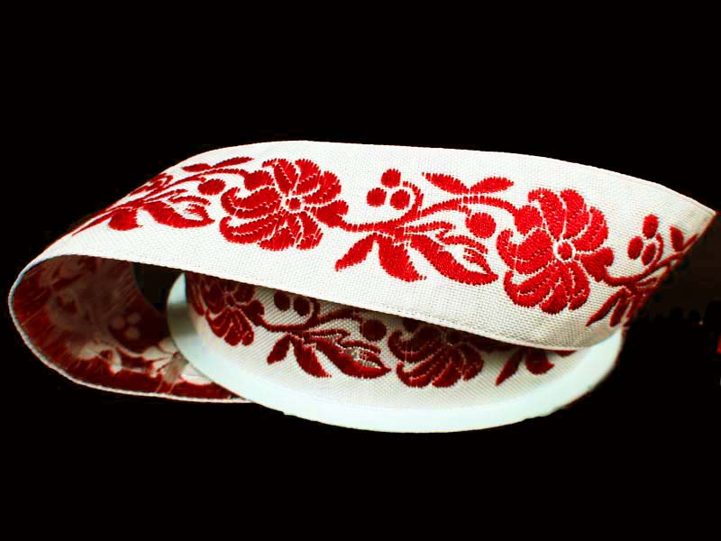 - Taśma o szerokości 2,5cm z kolorowym, kwiatowym haftem na taśmie.