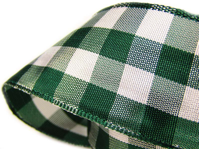Tkana wstążka o szerokości 40mm w obustronną, dużą kratkę na białym tle. Tasiemka dodatkowo ma na obu brzegach drucik dla łatwiejszego układania. Idealna na duże wieńce.