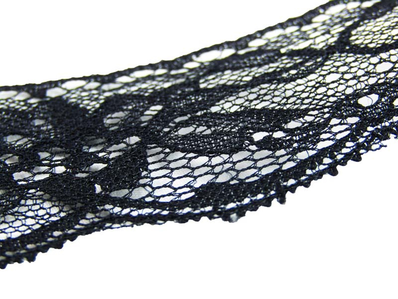 Matowa, miękka i przyjemna w dotyku koronka z rodzaju stabilnych o szerokości 5cm w kolorze czarnym.