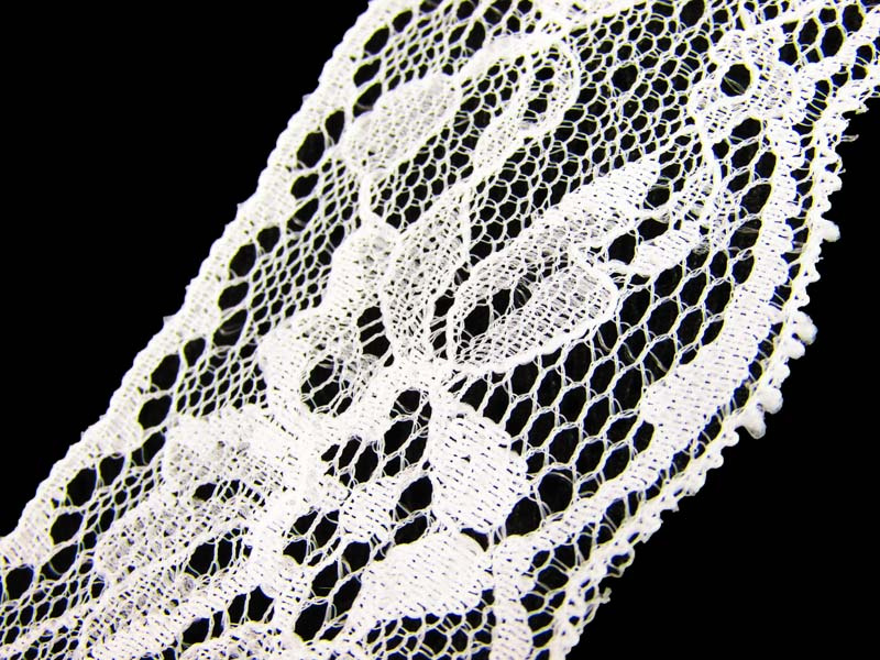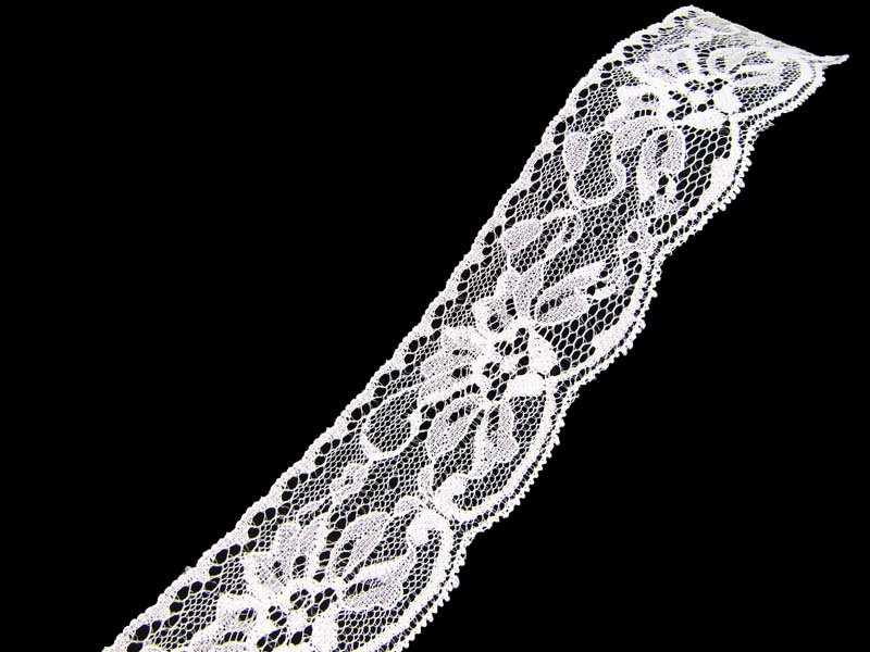 Matowa, miękka i przyjemna w dotyku koronka z rodzaju stabilnych o szerokości 5cm w kolorze białym.