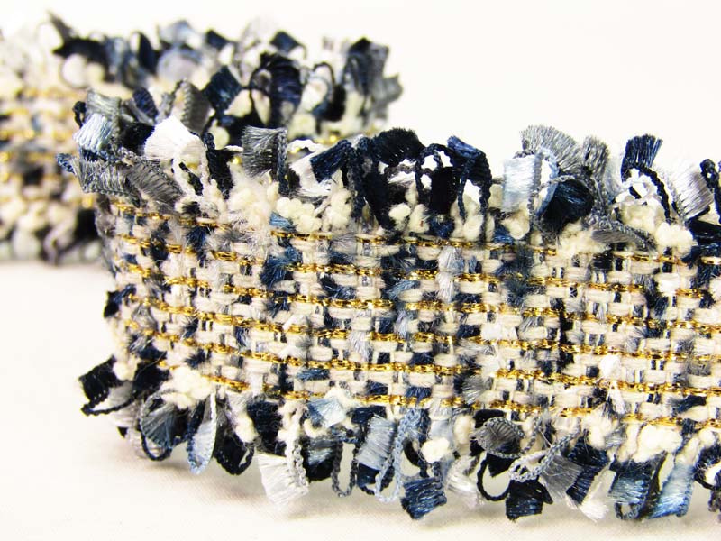 Taśma ozdobna z rodzaju tkanych z obustronnym wykończeniem. Dodatkowo delikatnie przepleciona złotą nitką.