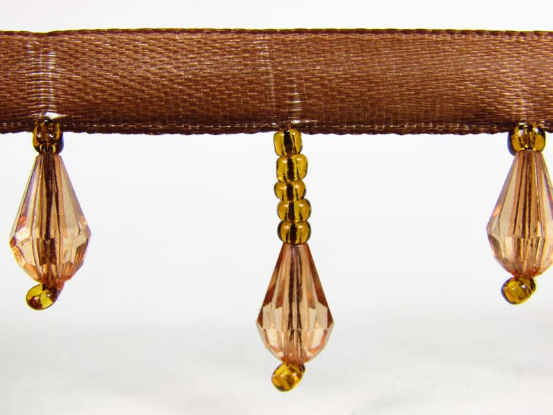 Tasiemka atłasowa o szerokości 1cm z przyszytymi kryształkami w formie sopelków o różnej długości.