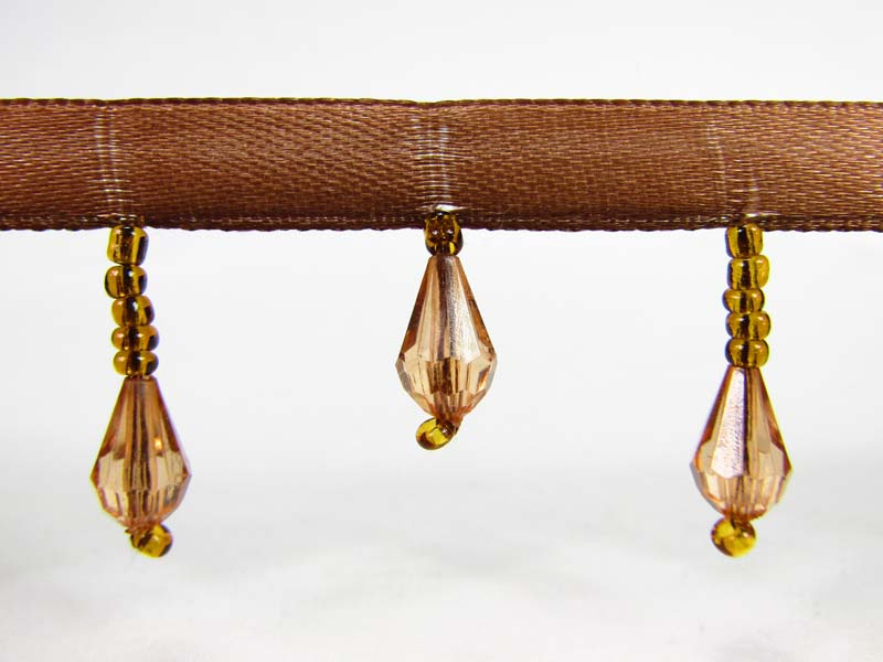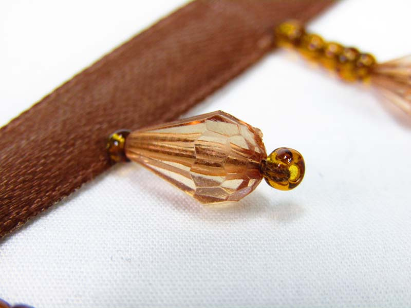 - Tasiemka atłasowa o szerokości 1cm z przyszytymi kryształkami w formie sopelków o różnej długości.