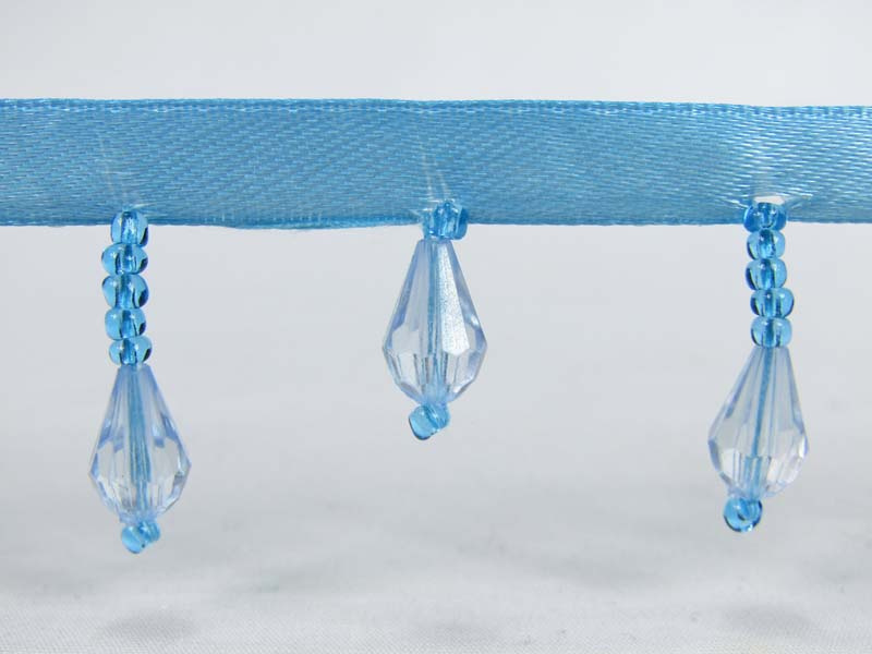 - Tasiemka atłasowa o szerokości 1cm z przyszytymi kryształkami w formie sopelków o różnej długości.