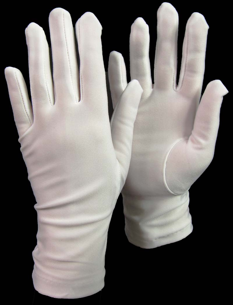 Rękawiczka wykonana z poliestrowej dzianiny o matowym wykończeniu. Stosowana w celach ochronny lub wykorzystywana przy różnego rodzajach uroczystościach państwowych, kościelnych i rodzinnych.