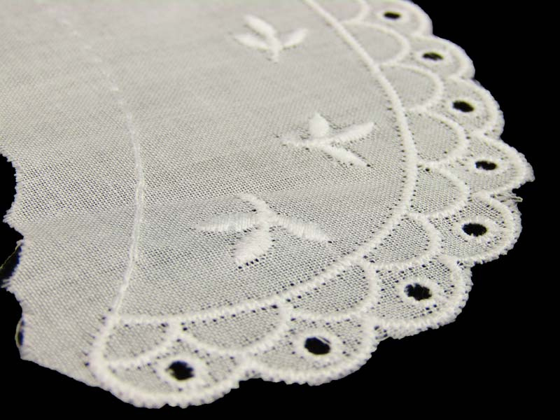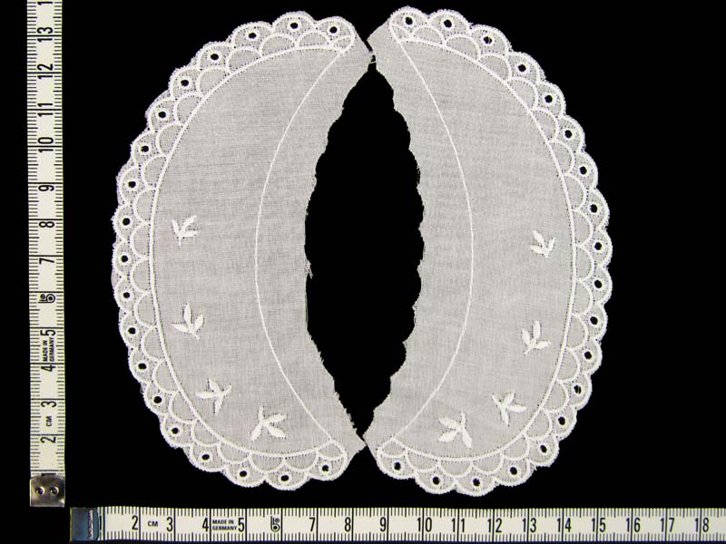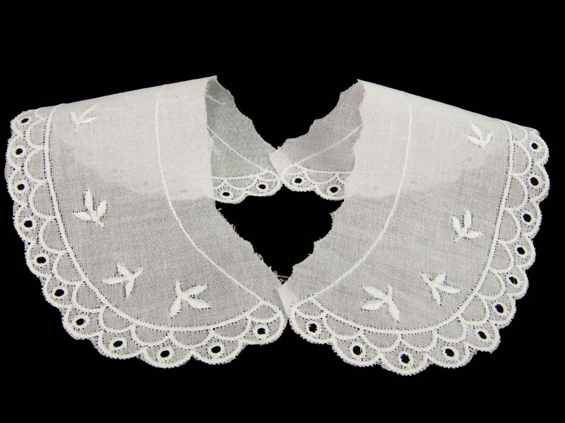 - Kołnierzyk dziecięcy z delikatnej etaminy z haftowanym, matowym wzorem.