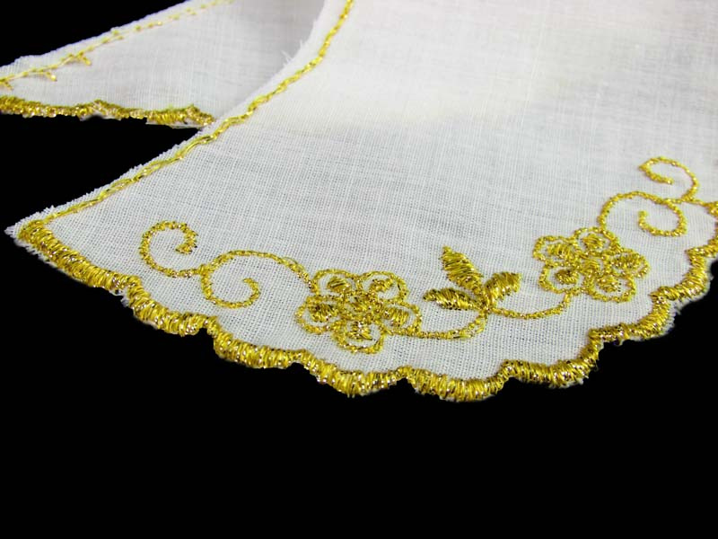 Biały kołnierzyk młodzieżowy haftowany złotą, metaliczną nitką na delikatnej etaminie.