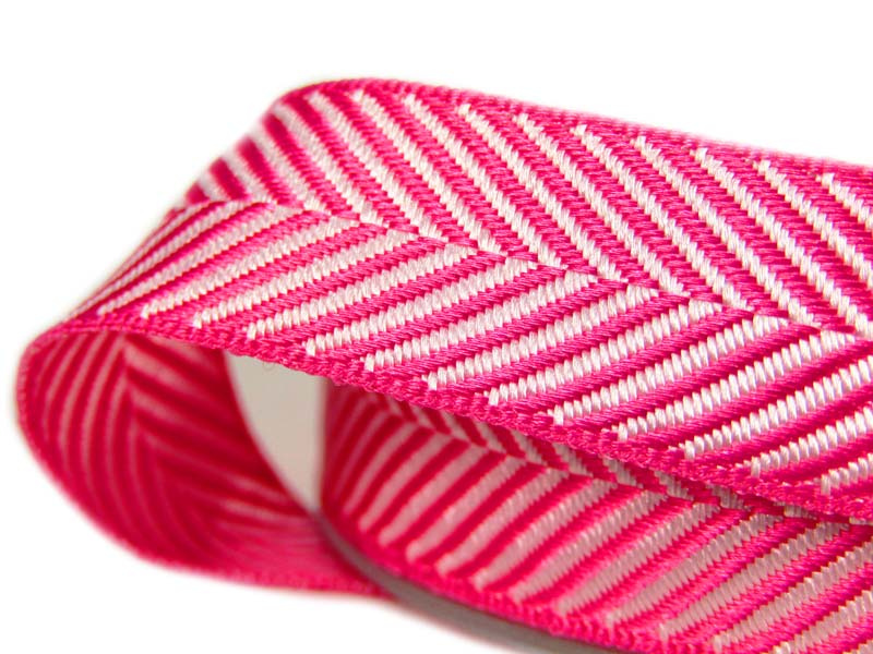 - Taśma tkana o szerokości 16mm o wzorze jodełki w kolorze.