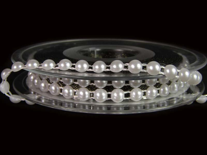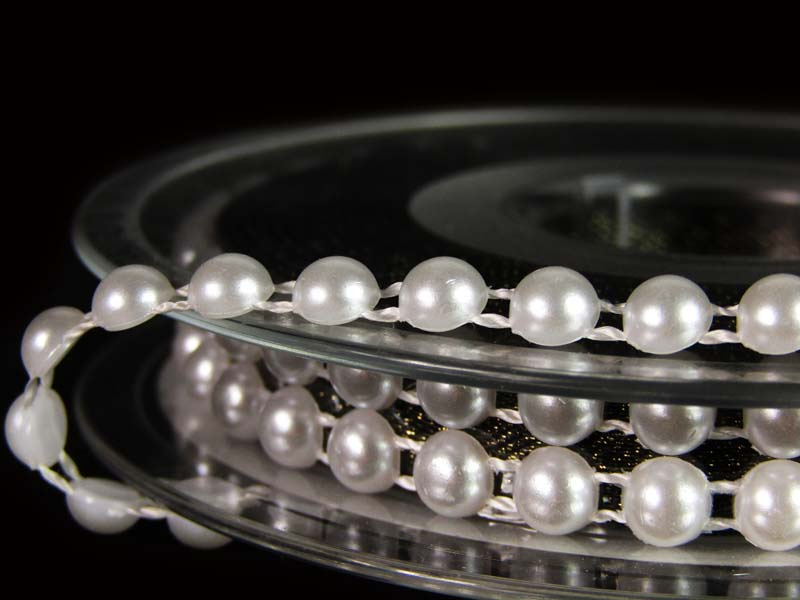 Pół-perły o średnicy 6mm połączone poliestrową, białą nitką .