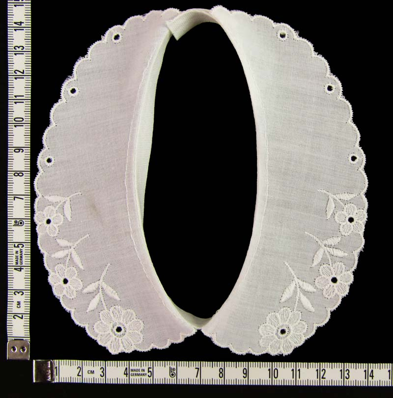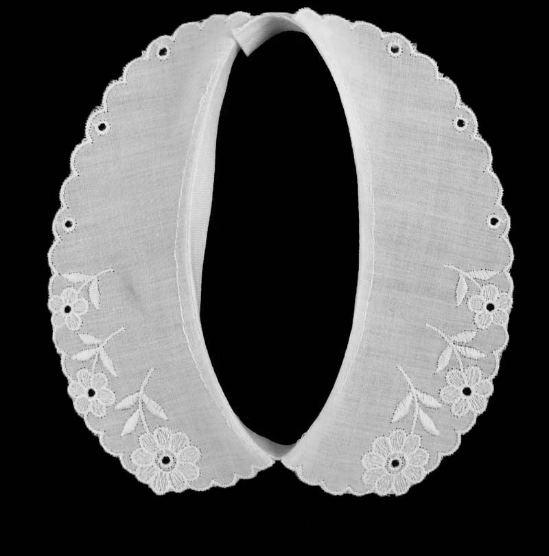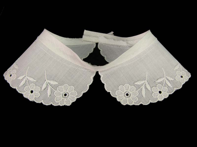 - Kołnierzyk dziecięcy z delikatnej etaminy z haftowanym, matowym wzorem.