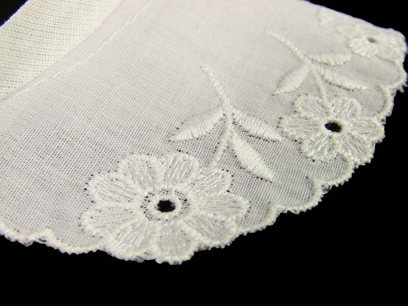 Kołnierzyk dziecięcy z delikatnej etaminy z haftowanym, matowym wzorem.