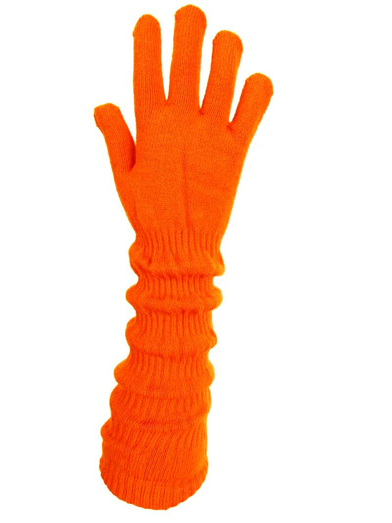 - Młodzieżowa, dziana rękawiczka o matowym wykończeniu z extra długim, marszczonym mankietem.