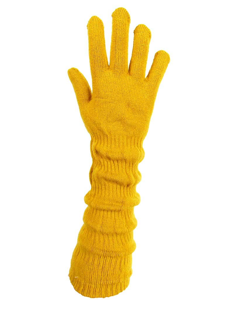 - Młodzieżowa, dziana rękawiczka o matowym wykończeniu z extra długim, marszczonym mankietem.