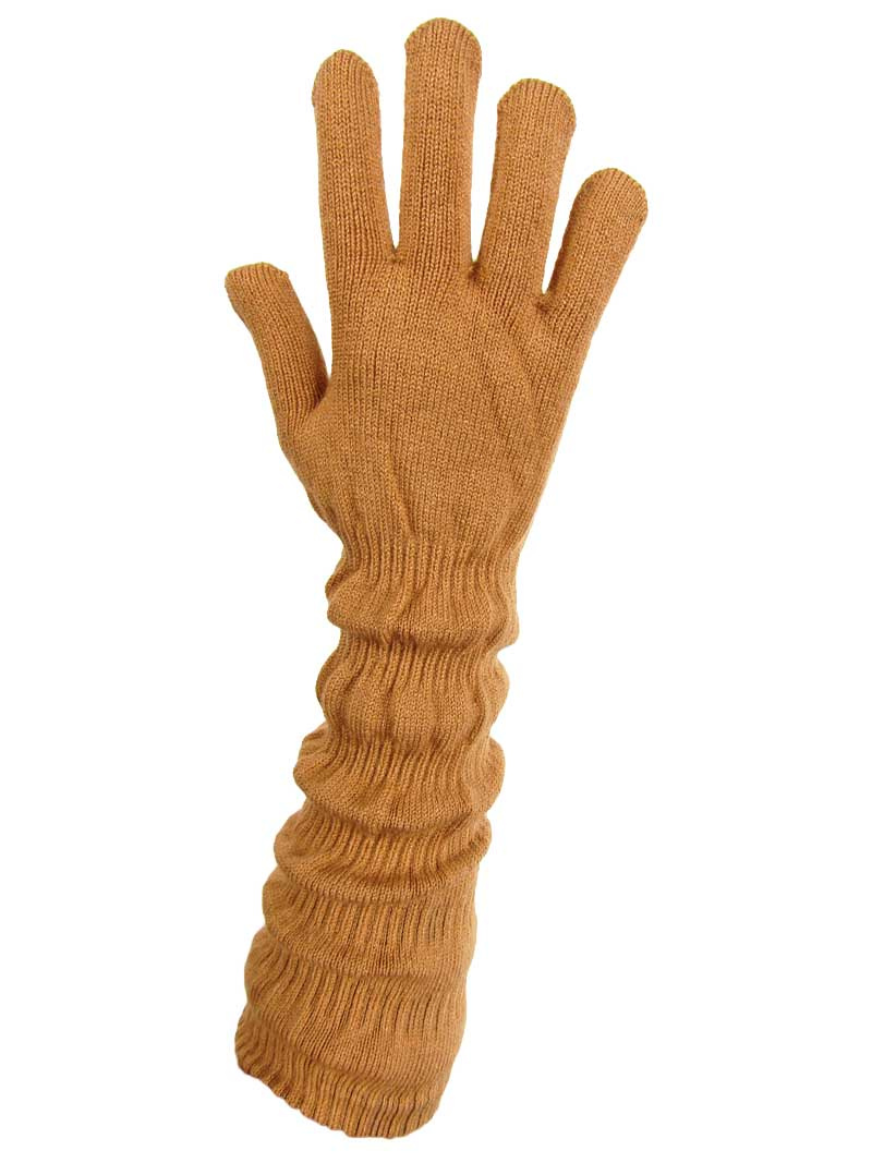 - Młodzieżowa, dziana rękawiczka o matowym wykończeniu z extra długim, marszczonym mankietem.
