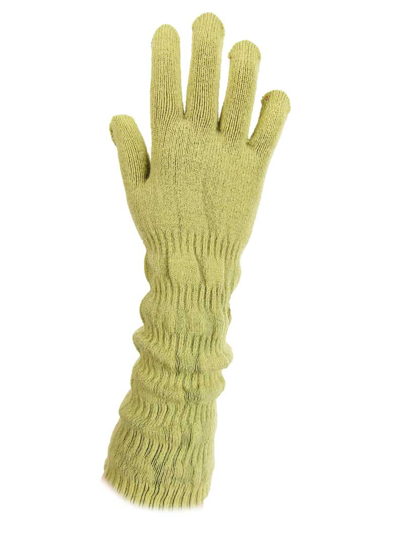 - Młodzieżowa, dziana rękawiczka o matowym wykończeniu z extra długim, marszczonym mankietem.