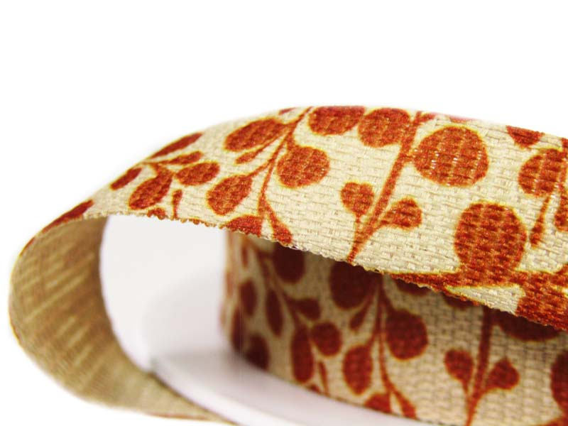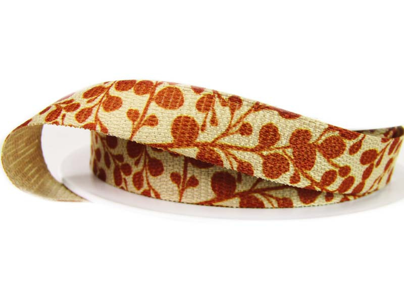 Matowa wstążka rustykalna 15mm z nadrukiem roślinnym w kolorze.