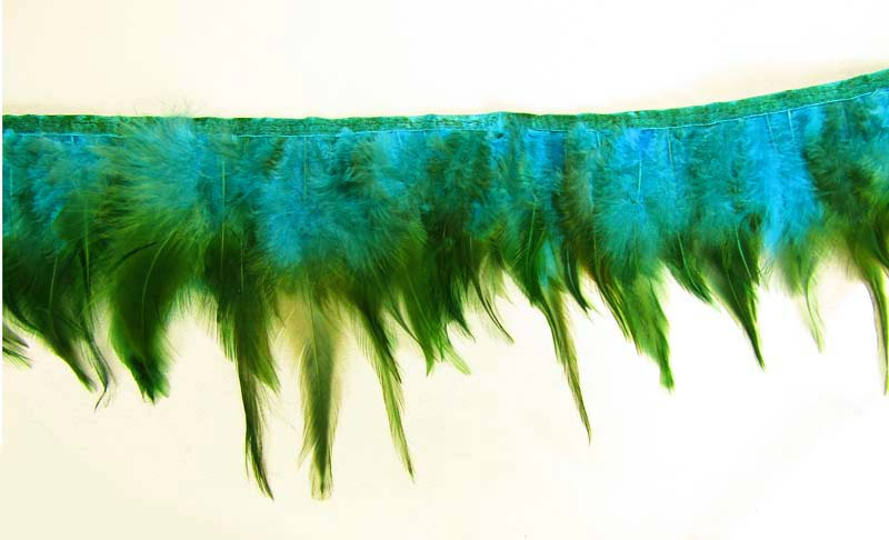 Taśma ozdobna o szerokości 12cm wykonana z ostro zakończonych, barwionych piór kogucich.