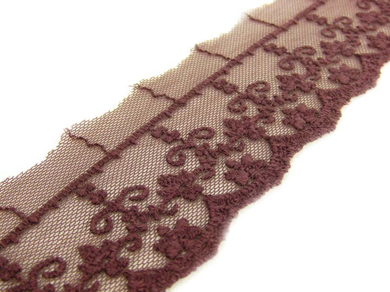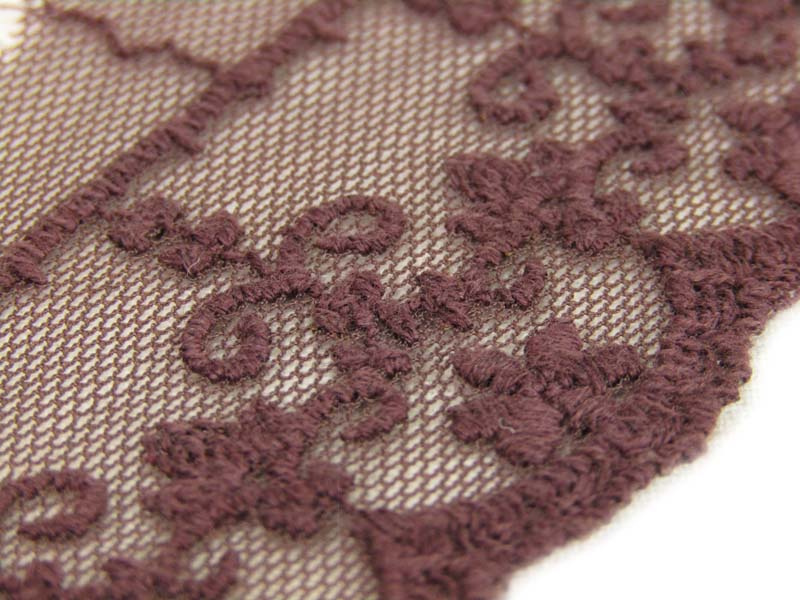 - Koronka tiulowa o szerokości 5cm z haftem wykonanym matową nitką.