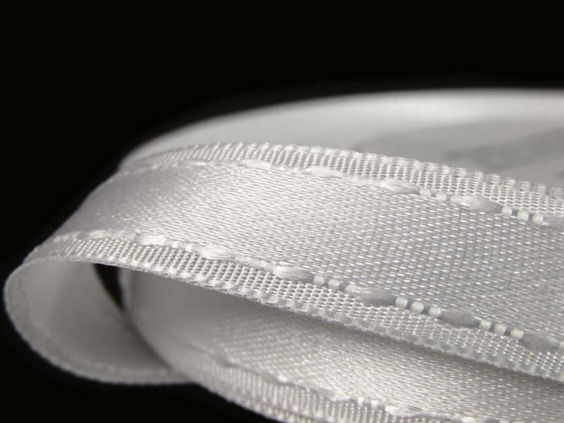 Ciekawa wstążka atłasowa z białym stebnowaniem na jej obu brzegach o szerokości 1,3cm w kolorze.