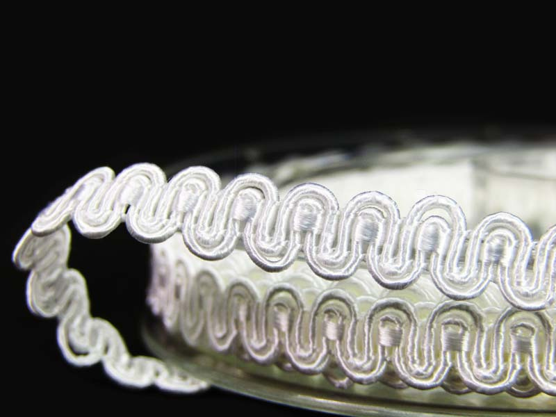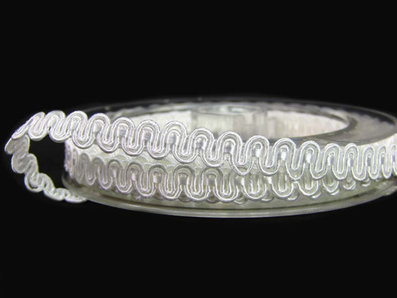 Taśma galonowa o wzorze fali w szerokości 0,8cm w kolorze biały z połyskiem.