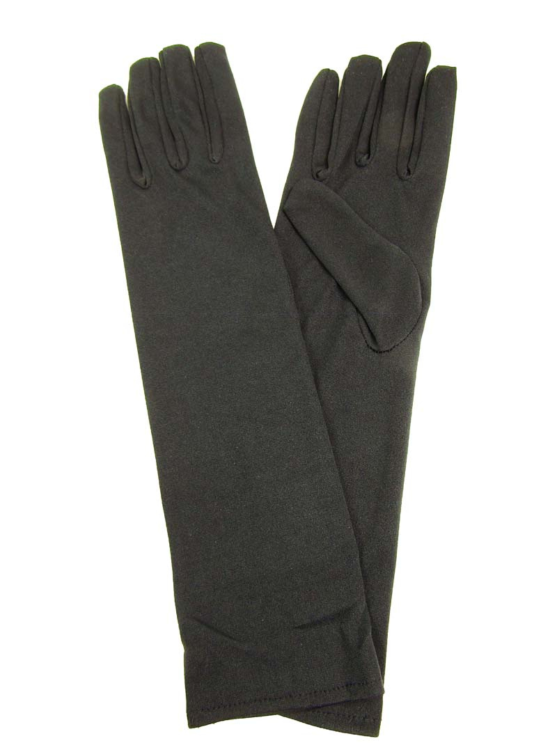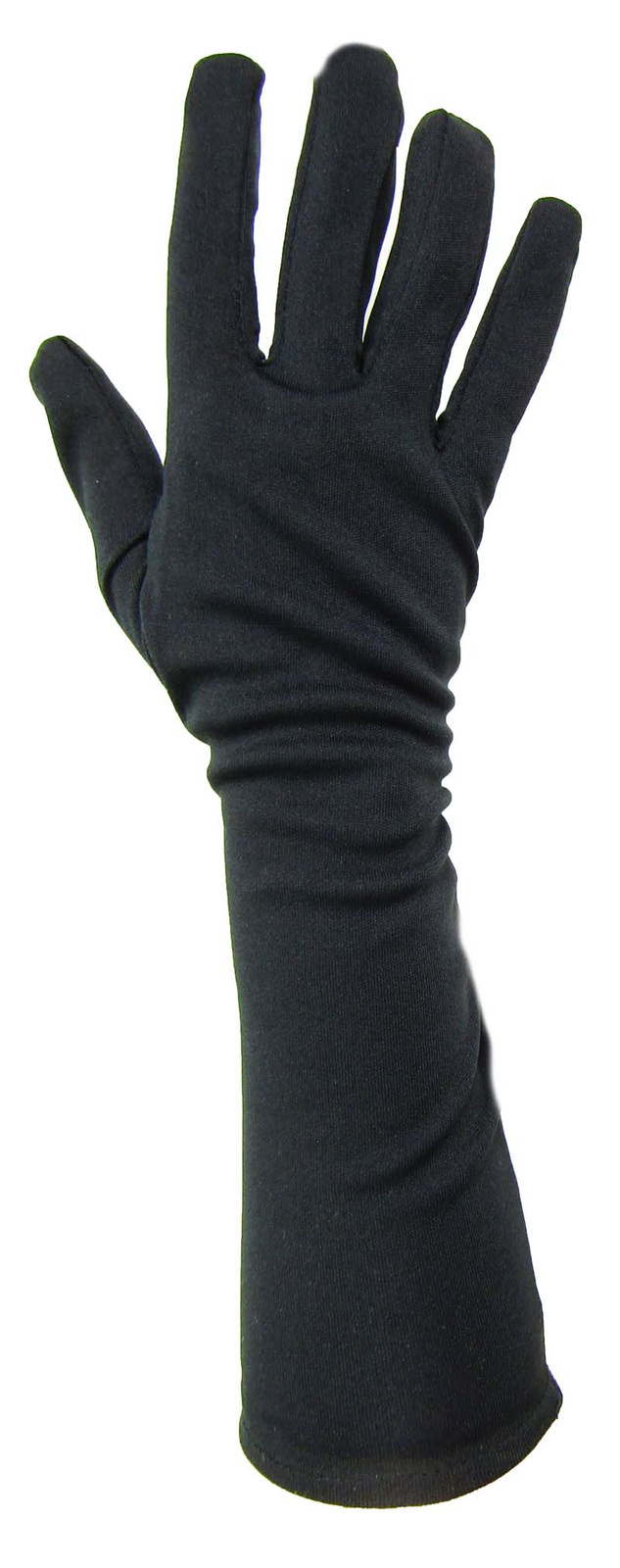 Długa wizytowa rękawiczka wykonana z poliestrowej, matowej dzianiny. Po założeniu tkanina lekko "pracuje" i dopasowuję się do dłoni.