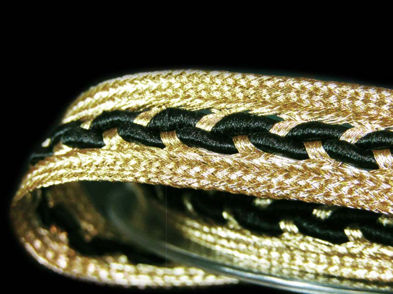 - Ozdobna taśma odzieżowa w kolorze złoto-czarnym.