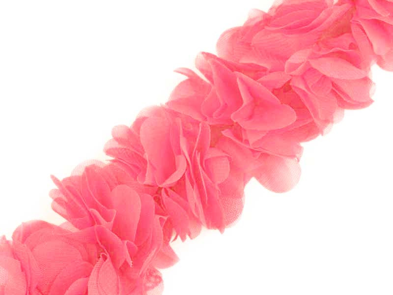 - Trójwymiarowa taśma ozdobna z gęsto ułożonymi odstającymi kwiatami.