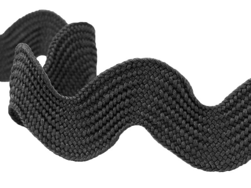 Taśma ozdobna w formie mięsistego, tkanego, dwustronnego zygzaka.