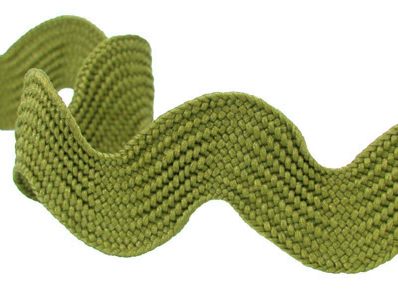 Taśma ozdobna w formie mięsistego, tkanego, dwustronnego zygzaka.