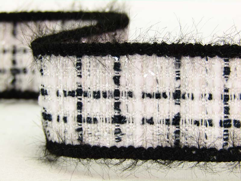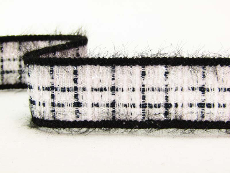 Taśma ozdobna o szerokości 2,5cm dwustronnie wykończona typu "Chanel" w kolorze.  Taśma jest miękka i przyjemna w dotyku.