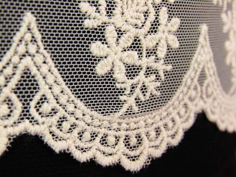 • Koronka tiulowa o szerokości 7,5cm z delikatnym kwiatowym wzorem, obustronnie wykończona.