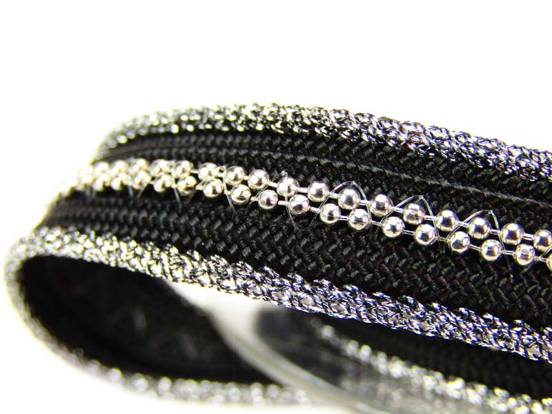 - Ozdobna, tkana taśma z dwu-rzędowym kulkowym łańcuszkiem naszytym przez środek.