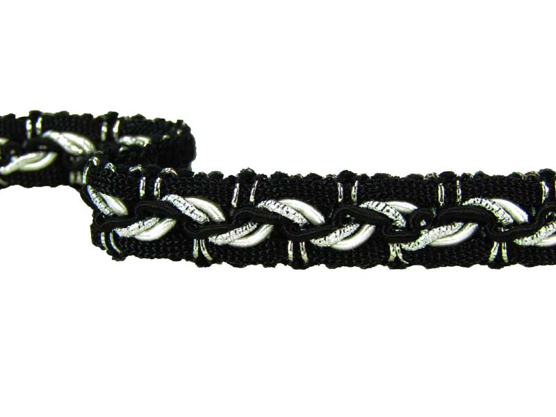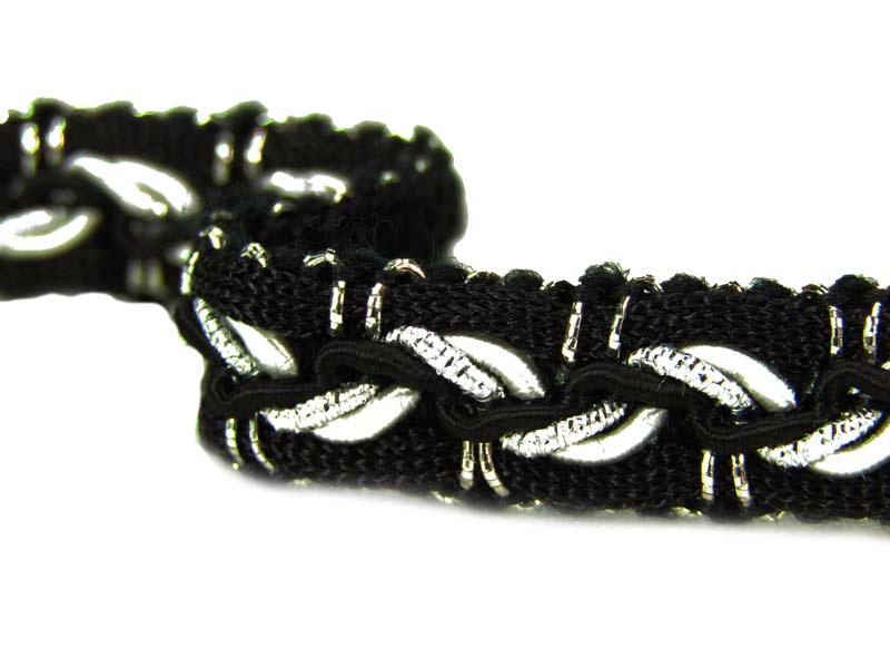 Taśma 1cm ozdobna pleciona czarno-srebrna